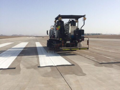 Provide temporary markings and traffic controls on the work zones to establish safe working condition. Remove rubber and paint built up by using sand/abrasive materials injected in to high-pressure system. Clean the runway pavement area by water- jetting which is capable of discharging water flow of 8-9 gallons minute at 35,000 psi to 38,000 psi.