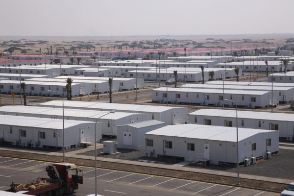 HVAC system will be furnished on the building where the compressor units and will be installed at exterior concrete pads. Grounding system was provided for the equipment and modular building. All required new utility system will be hooked up to existing utilities. Fabrication off site, on site work necessary to construct foundations and connect to utilities, transportation from the fabrication yard to the site, placement of the facility on foundations, connect to utilities and other pertinent works to provide a complete and usable dry stock modular facility offices, 16 ft. by 46 ft. (24 each) Furnish and install double storey 16 room dormitory facilities (16 nos.). The facility shall contain 2 rows of rooms separated by a hallway. It contains a shower and latrine facility on each floor. Each room will be 16’ x 12’ in size. The facility will include fire fighting system, fire sprinkler heads, piping system and fire panel system. The facilities shall be equipped with all utilities such as water sewer, electrical and communication system. The single storey dormitory facility (16 man sleeper) 56 each.