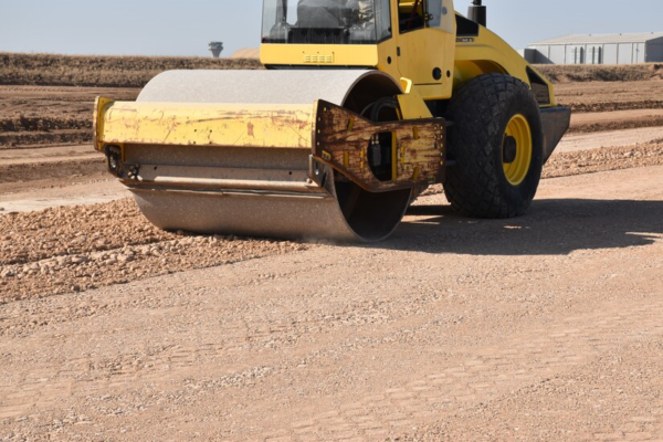 Construction of Aircraft Apron pavement (50,000m2): Grade, level and compact the sub-grade. Bury all existing communication and power lines including conduits required. Construct the concrete pavement by; Install polyethylene sheet layer, formworks & dowels. Pour concrete in the panel – alternate sequence, curing. Construct expansion joints. Lay asphalt on the apron driveway. Provide pavement marking.